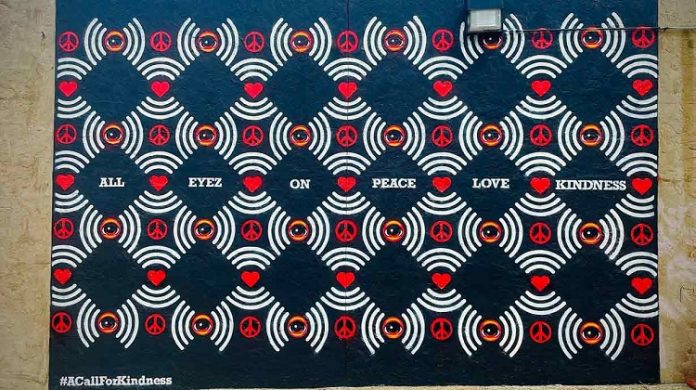 “I am known for my signature @EYEZ and use them to make a connection to the people who find them on the streets,” said Peat Wolleager, the artist who painted the mural. “I’m excited to be selected to represent Saint Louis for #ACallForKindness with my mural in the Delmar Loop! If you look closely in my eye there’s actually a hidden smiley face that represents kindness. This mural is an Augmented Reality mural that animates when you scan it with the Artivive App and is my first AR mural in Saint Louis.”