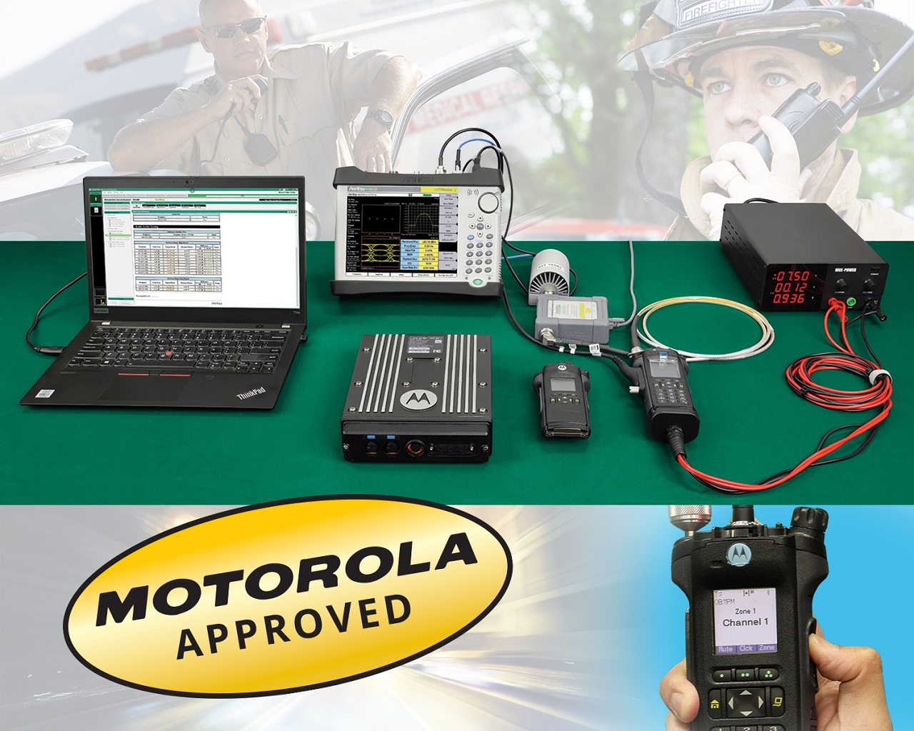 Anritsu‘s LMR Master S412E is the only test instrument approved by Motorola for both infrastructure (base station) and subscriber (mobile handset) testing.