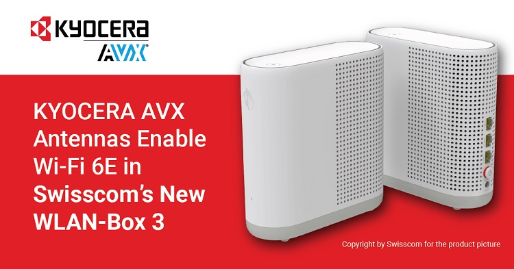 KYOCERA AVX, a global manufacturer of advanced electronic components engineered to accelerate technological innovation and build a better future, designed and developed the custom high-performance antennas implemented in Swisscom’s new third generation WLAN-Box, the WLAN-Box 3, which can be used as a repeater or WLAN access point to significantly expand Wi-Fi coverage in residential applications.
